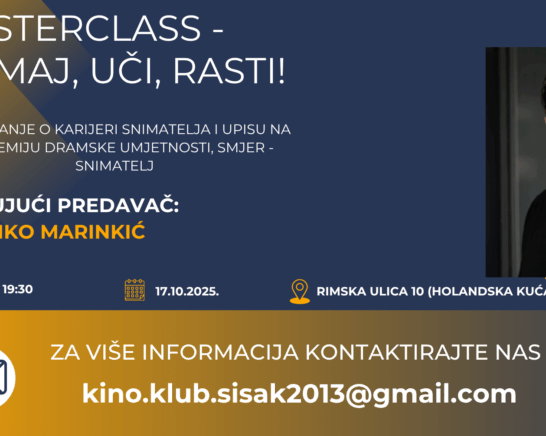 Hrvatski filmski savez Kino klub Sisak Masterclass s Marinkom Marinkićem u Kino klubu Sisak 10.10.2025.